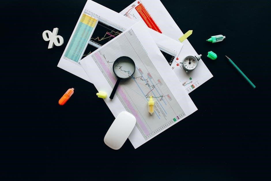 To read a pulse oximeter chart‚ locate the oxygen saturation (SpO2) levels on the vertical axis and pulse rate on the horizontal axis․ Reference lines indicate normal ranges for SpO2 (typically 95-100%) and pulse rate (60-100 bpm for adults)․ Compare the plotted readings to these benchmarks to identify trends or abnormalities․ Note any deviations from normal ranges‚ as they may signal conditions like hypoxemia or arrhythmias‚ requiring further evaluation․